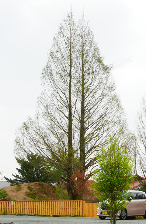 山東こども園の園庭でずっと子ども達を見守ってきた大きなメタセコイアの木。